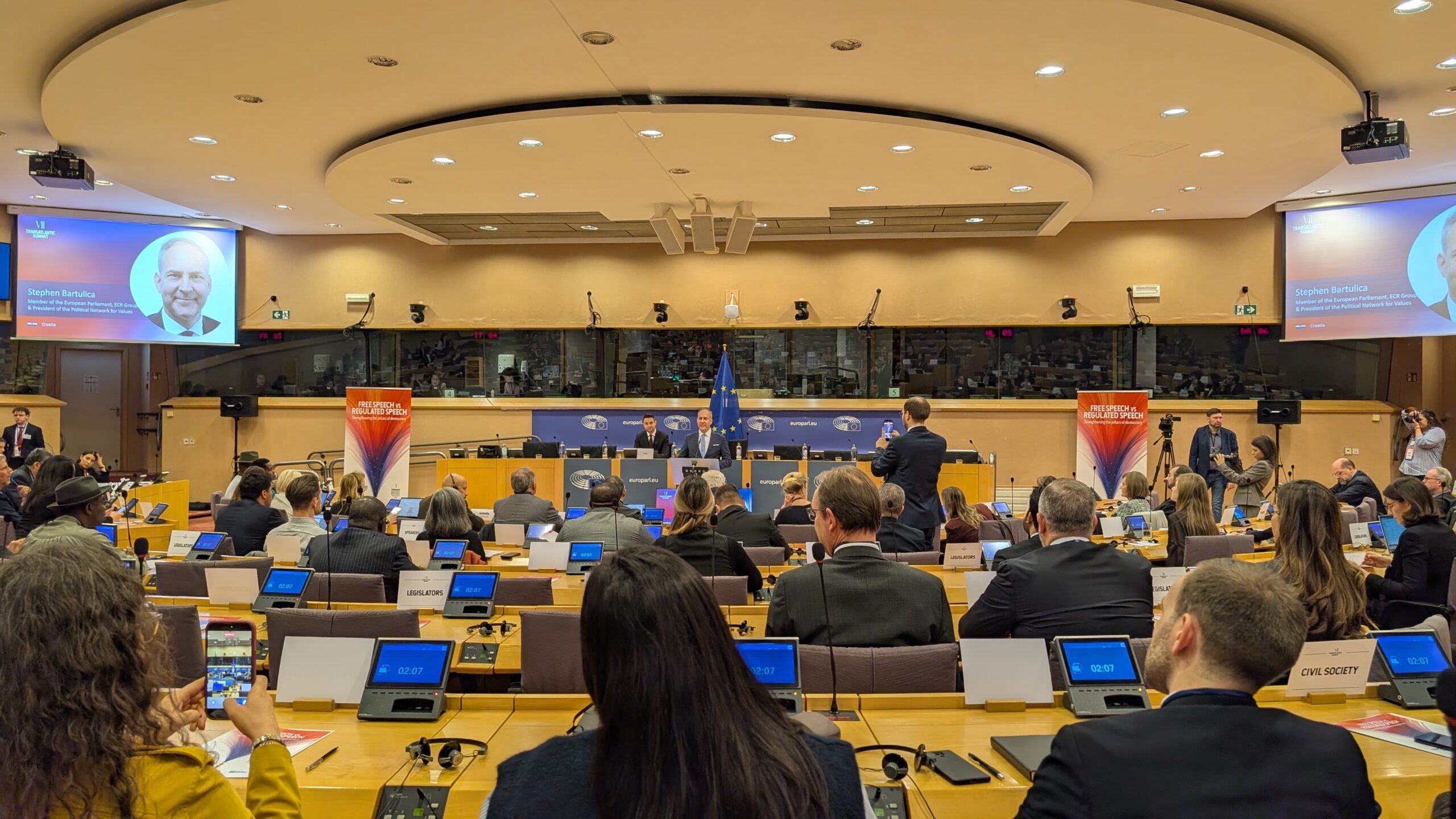 Spotkanie poświęcone było narastającym ograniczeniom wolności słowa w krajach zachodnich oraz konsekwencjom regulacji cyfrowych dla debaty publicznej i demokracji.